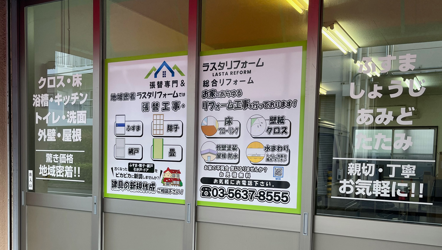 “張替専門&総合リフォームのラスタリフォームは東京都墨田区を拠点にし様々な住まいのリフォームを行っております。襖・障子・網戸・畳の張替工事やクロス壁紙・床の張替工事、建具の新調工事。水回りのトイレ・キッチン・ユニットバスの交換。外壁塗装、防水工事など内外装ともにお家のお悩み事を解決いたします。墨田区だけでなく江東区や台東区、江戸川区、葛飾区などにお住いのお客様からのご相談も承っております。お見積りは無料となっておりますので、お気軽にお問い合わせ下さい。”