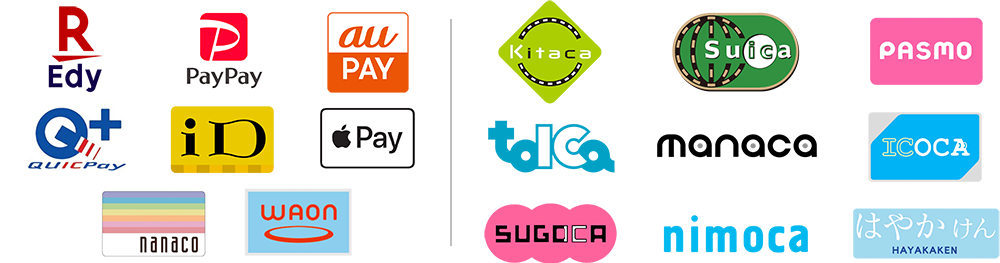 交通系電子マネーやiD、QUICPayなどの電子決済にも対応しております。