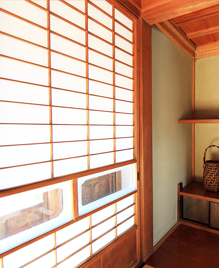 障子紙は一般的に光の透過率が約40%~50%と言われ、日当たりの温かさを生み出すと同時に直射日光を適度に遮ることでUVカットにも役立っております。